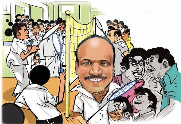 அப்போது, அமைச்சர் சுப்பிரமணியன், காஞ்சிபுரம் தொகுதி தி.மு.க., - எம்.எல்.ஏ., எழிலரசன் ஒரு அணியாகவும், ஊரக தொழில் துறை அமைச்சர் அன்பரசன், உத்திரமேரூர் தி.மு.க., - எம்.எல்.ஏ., சுந்தர் மற்றொரு அணியாகவும், இறகு பந்து விளையாட களம் இறங்கினர்.