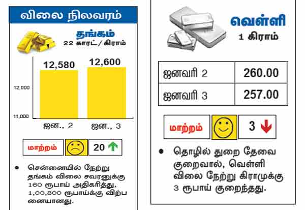 தொழில் துறை தேவை குறைவால் வெள்ளி விலை நேற்று கிராமுக்கு 3ரூபாய் குறைந்தது.