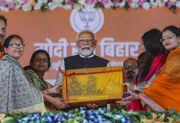 முன்னதாக முசாபர்பூர் நகரில் நடந்த பொதுக்கூட்டத்தில் பிரதமர் மோடி பேசியதாவது: இந்த தேர்தல் இந்தியாவின் எதிர்காலத்தை தீர்மானிக்கும் தேர்தல். பலவீனமான, கோழைத்தனமான, நிலையற்ற காங்கிரஸ் ஆட்சியை மக்கள் விரும்பவில்லை. கனவில் கூட பாகிஸ்தானின் அணுகுண்டை பார்க்கும் அளவுக்கு இவர்கள் (எதிர்க்கட்சிகள்) பயப்படுகிறார்கள். பீஹாரில் சட்டம் ஒழுங்கை மீண்டும் சரியான பாதைக்குக் கொண்டு வந்தது தேசிய ஜனநாயக கூட்டணி அரசு தான்.