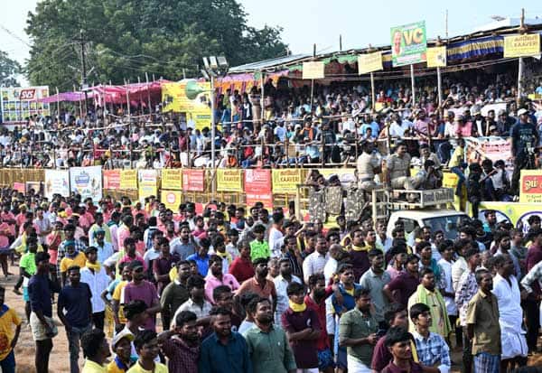 பிடிக்க துடிக்கும் கரங்கள்: தெறித்து பறக்கும் காளைகள்.