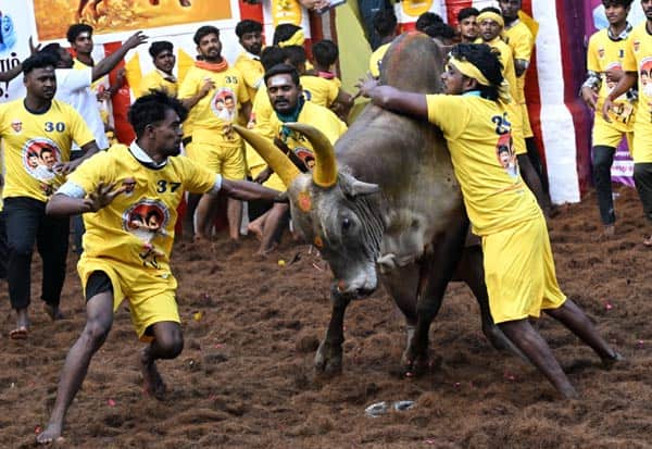 பிடிக்க துடிக்கும் கரங்கள்: தெறித்து பறக்கும் காளைகள்.