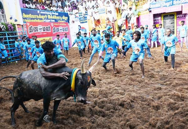 பிடிக்க துடிக்கும் கரங்கள்: தெறித்து பறக்கும் காளைகள்.
