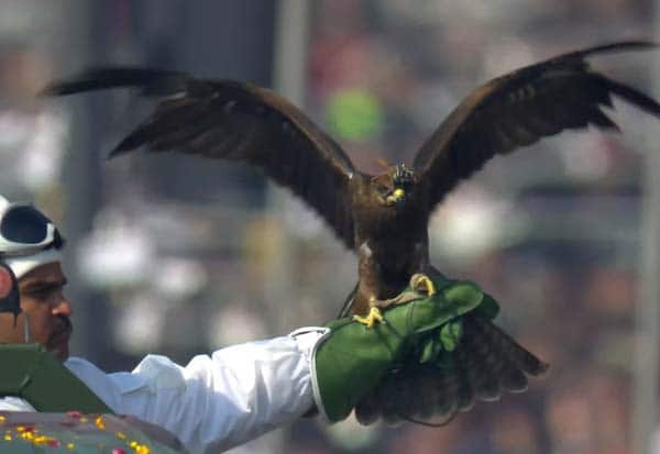 அணிவகுப்பில் இரட்டைத் திமில் ஒட்டகங்கள், பறவைகள், நாட்டு நாய்கள் பங்கேற்றன.