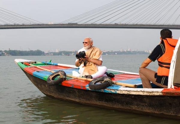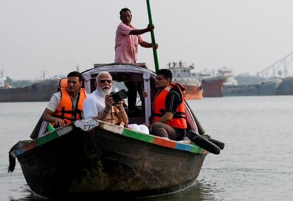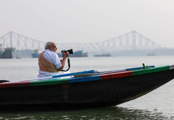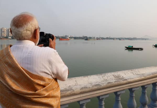கோல்கட்டாவிற்கு சென்றுள்ள பிரதமர் மோடி ஹூக்ளி நதியில் படகில் பயணம் செய்தார். அவர் இயற்கை அழகினை போட்டோ எடுத்து மகிழ்ந்தார்.