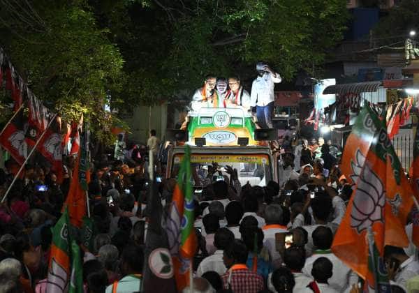 சட்டமன்ற தேர்தலை முன்னிட்டு கன்னியாகுமரி மாவட்டம் நாகர்கோவிலில் நடந்த ரோடு ஷோவிற்கு வருகைதந்த பிரதமர் மோடி.