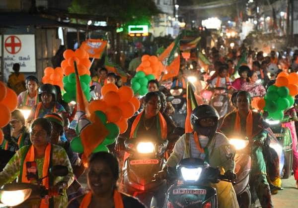 கோவை கோவில்மேடு பகுதியில் வடக்கு தொகுதி பா.ஜ., வேட்பாளர் வானதி சீனிவாசனுக்கு ஆதரவாக டெல்லி முதல்வர் ரேகாகுப்தா பிரசாரம் செய்தார். இதில் ரோடு ஷோவில் கலந்துகொண்ட தொண்டர்களில் ஒரு பகுதியினர்.
