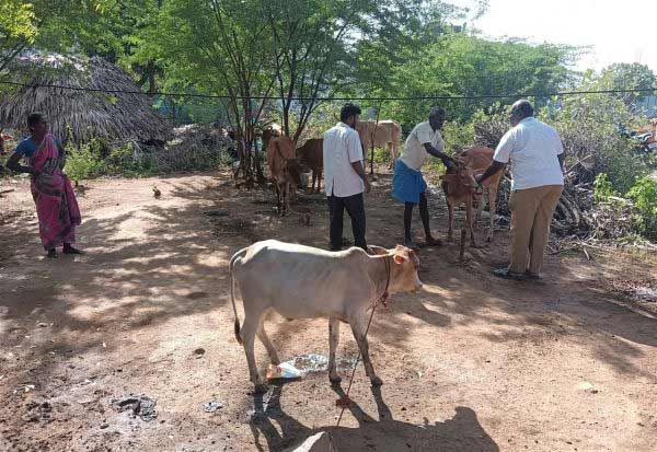 காஞ்சிபுரம் மாவட்டம்உத்திரமேரூர் ஒன்றியம், பழவேரி கிராமத்தில்கால்நடைகளுக்கான கோமாரி தடுப்பூசி முகாம் நடந்தது.