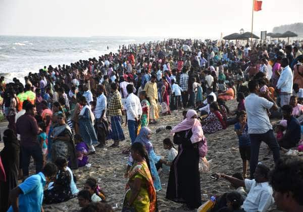 கடலூர் தேவனாம்பட்டினம் சில்வர் பீச்சில் காணும் பொங்கலை யொட்டி குவிந்த பொதுமக்களின் கூட்டம்.