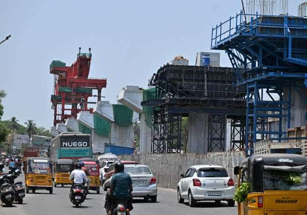 துறைமுகம் - மதுரவாயில் இடையிலான பறக்கும் மேம்பால திட்டப்பணிகள் ஜரூராக நடந்து வருகிறது. இடம்: மதுரவாயல்