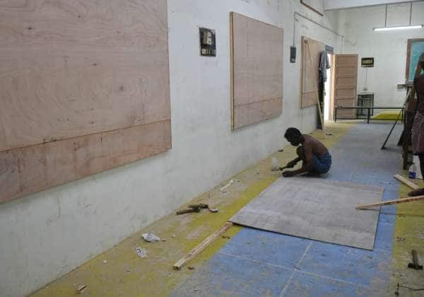 சட்டமன்ற தேர்தலை முன்னிட்டு திருநெல்வேலி தெகுதியில் உள்ள வாக்கு என்னும் மையத்தில் ஓட்டு இயந்திரங்கள் வைப்பதற்காக தயாராகும் அறைகள்.