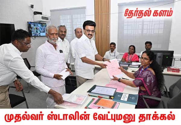 கொளத்துார் தொகுதியில் போட்டியிடுவதற்கு முதல்வர் ஸ்டாலின் இன்று வேட்பு மனு தாக்கல் செய்தார். இடம்: சென்னை